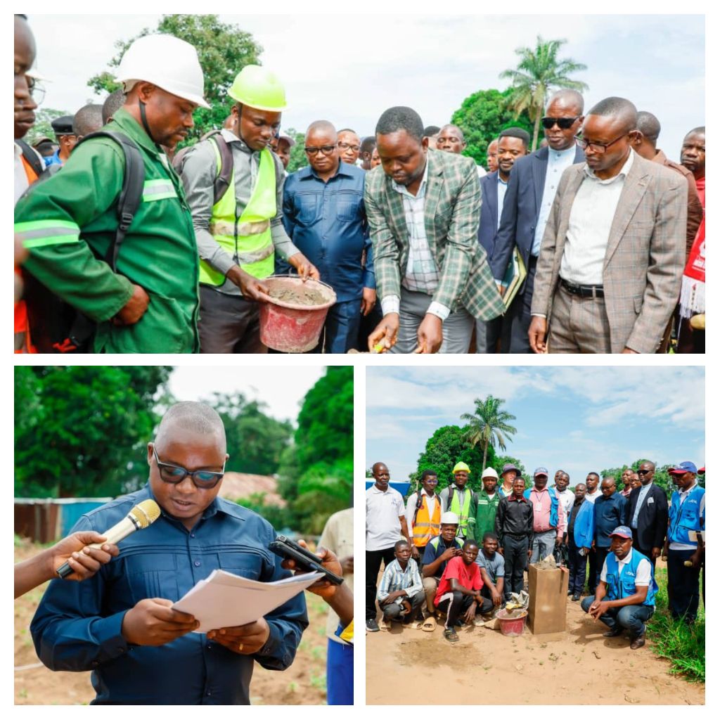 Le point d’orgue de la cérémonie a été atteint lorsque le Ministre Provincial de la Communication et représentant du Gouverneur, Joseph KABOBO BILOLO, a procédé à la pose de la première pierre.