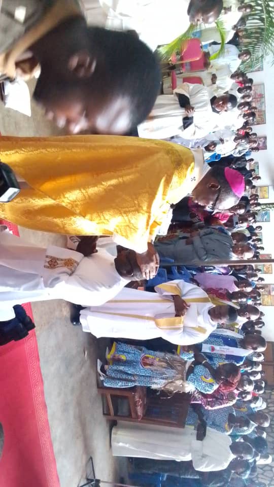 La célébration eucharistique a été présidée par Monseigneur Félicien Ntambue, évêque du diocèse, entouré de presque tout le clergé local, en présence des fidèles venus nombreux pour vivre cet événement ecclésial majeur.